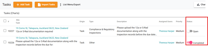 - Slide the toggle button from Open to Completed