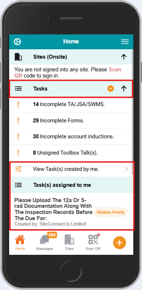 As well as being able to view Tasks in the Home page of the app you can also view them in the Hamburger Menu (three horizontal lines) in the top right corner of the Home screen.