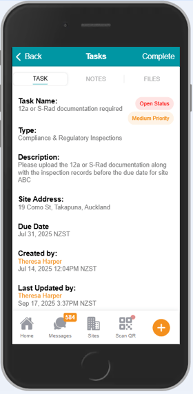 Click here for instructions on how to create and assign a Task to a user in the Mobile App
