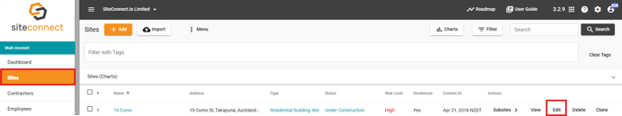 Go to the Sites menu on the left-hand side. A list of your sites will display. Click on Edit on the right-hand side of the applicable site.